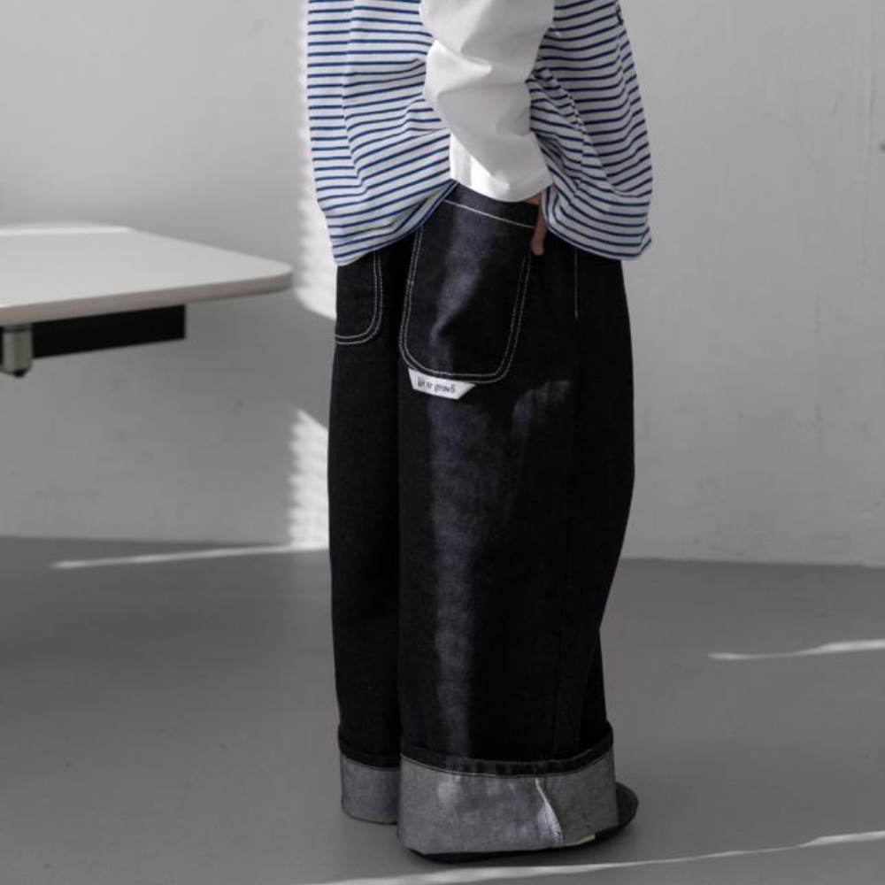 ステッチデザインの可愛いデニムパンツ。少しぶかっとしたワイドシルエットで、バックスタイルのロゴのワンポイントもGOOD!男の子でも女の子でも着用頂けます。XXL(140cm)はジュニアサイズ規格の為、定価より+¥200頂戴いたします。