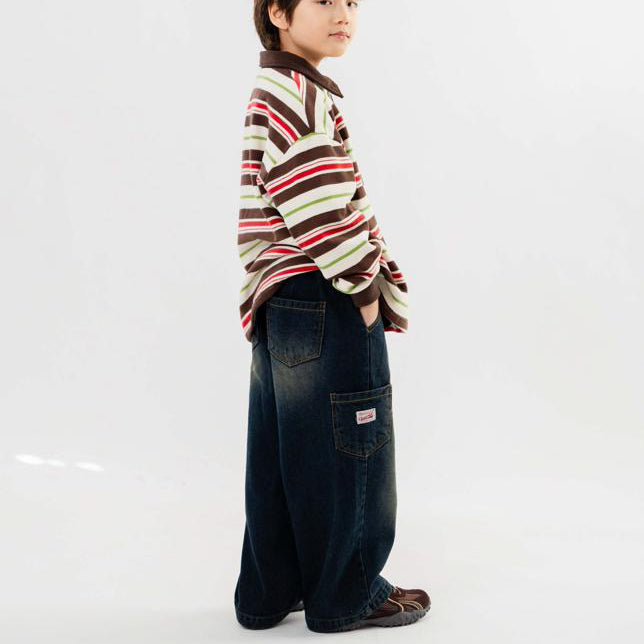 ロゴポッケの可愛いデニムパンツ!ベーシックなストレートシルエット!裏起毛でしっかり暖か!男の子でも女の子でも着用できます。XXL(140cm)はジュニアサイズ規格の為、定価より¥200頂戴いたします。