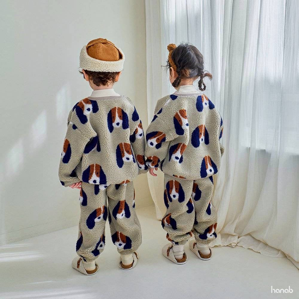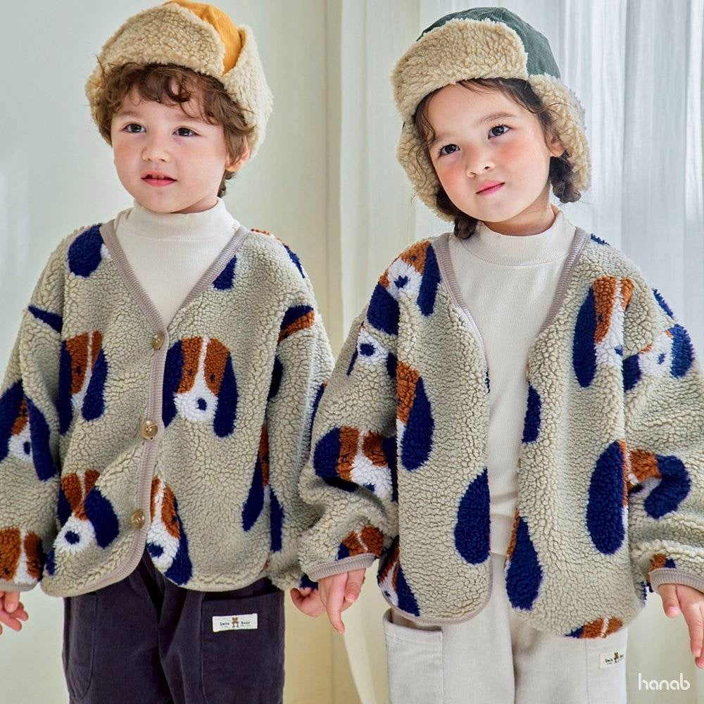 ワンちゃん柄の可愛いボアカーディガン!ボア生地でしっかり暖か。実店舗でも大変人気のあるアイテムです。男の子でも女の子でも着用頂けるアイテムです!