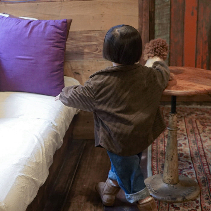 柔らかなコーデュロイ地がナチュラルで可愛いシャツ!実店舗で人気のあるアイテムです!男の子でも女の子でも着用頂けます。