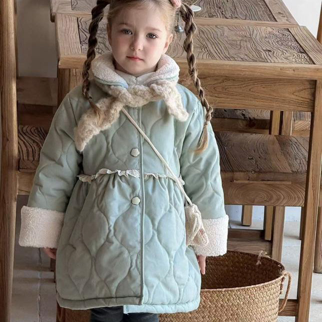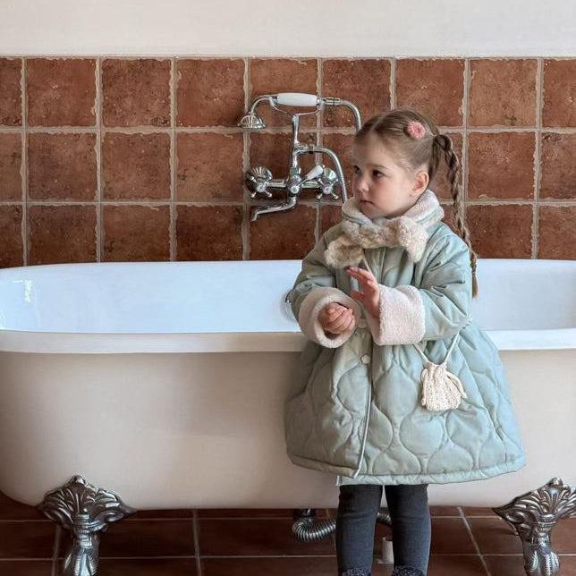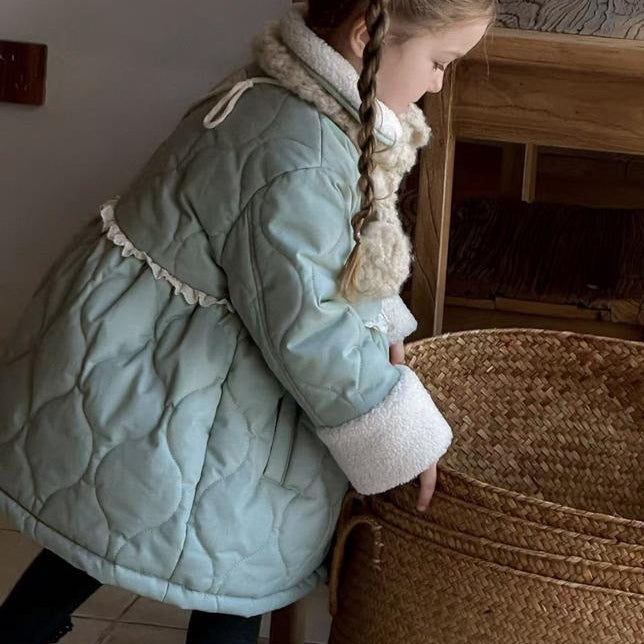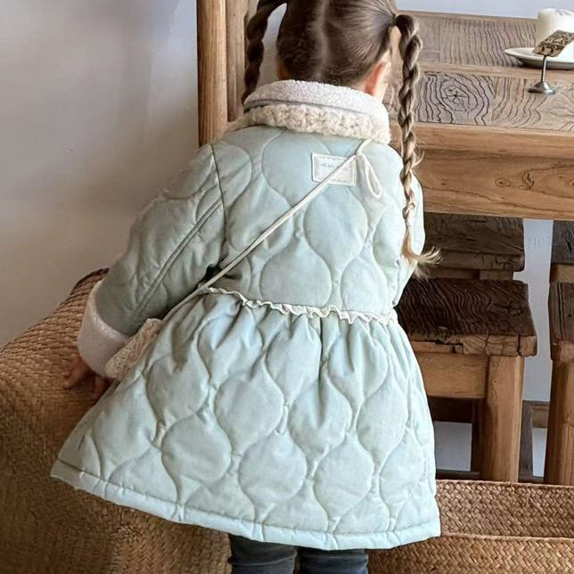 Aラインのガーリーテイスト溢れるキルティングウィンターコート!刺繍のあしらいやボアの丸襟や袖のきりかえしなど、女の子らしさあふれる1枚!裏ボアでしっかりあたたか!