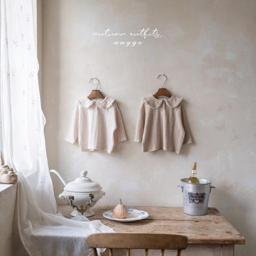 セーラー襟の可愛い薄ニットカットソー!襟にはぼんぼりのガーリーデザイン!立体的な生地感がお洒落でGOOD!前身ごろの襟ぐりのボタンは開閉可能です。生地に伸縮性はあります。