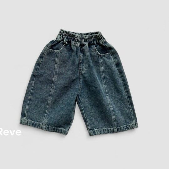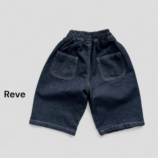 わたり幅の広いデニムワイドパンツ!ゆったりしたシルエットがGOOD!ステッチデザインも可愛いです。ウエストもゴム仕様で伸縮性があります。男の子でも女の子でも着用頂けます。