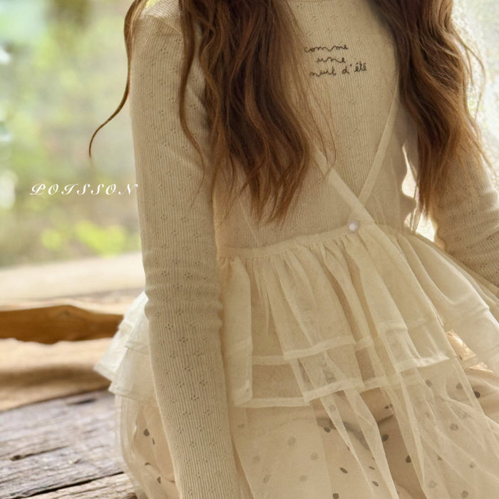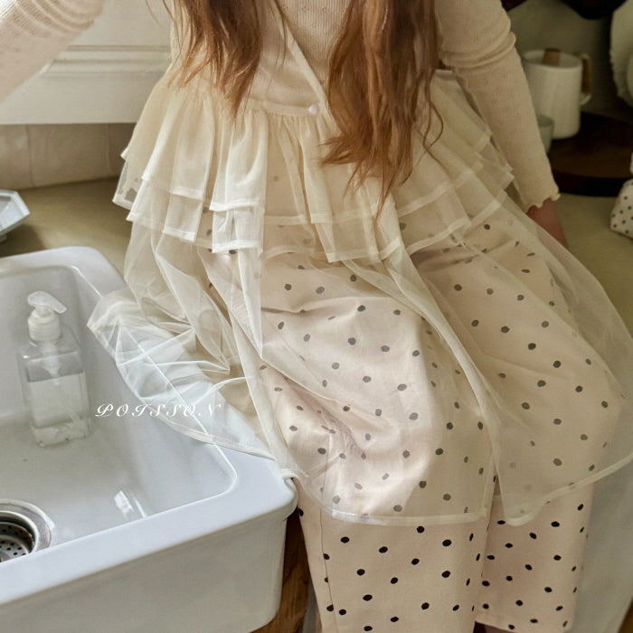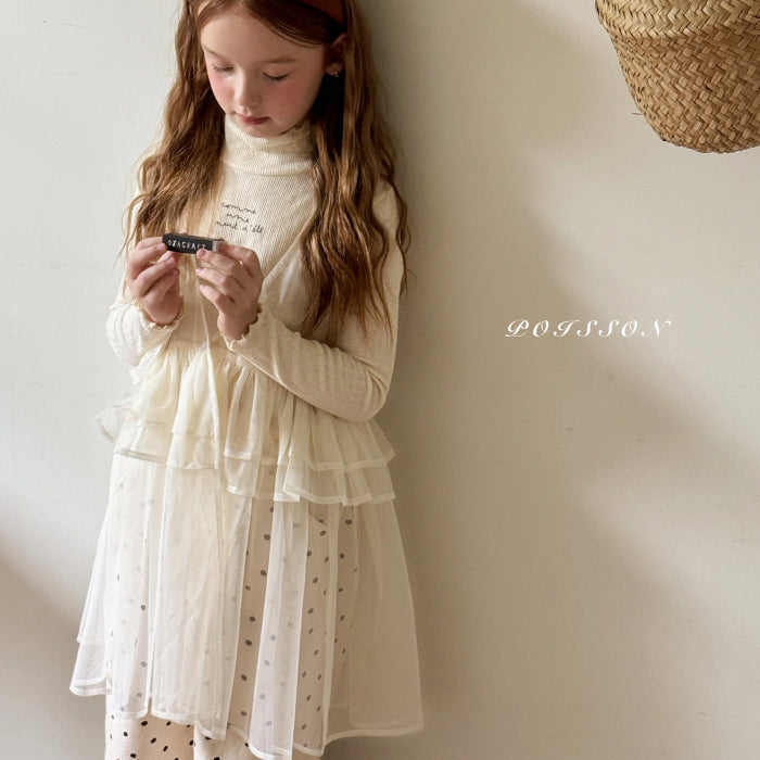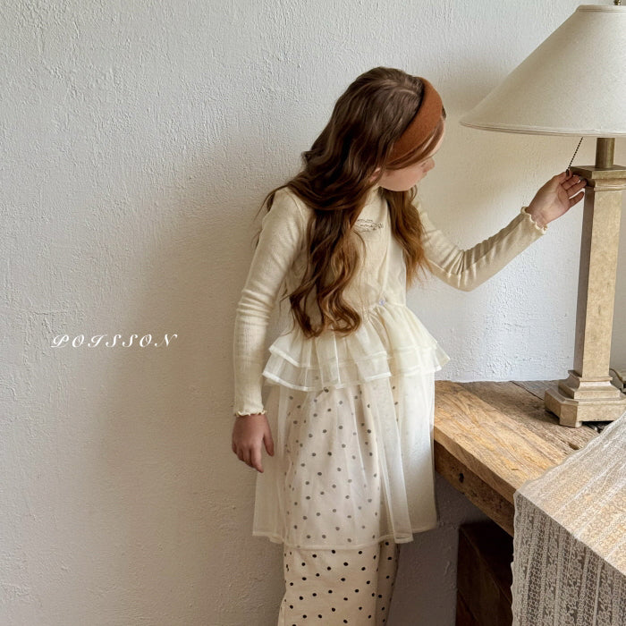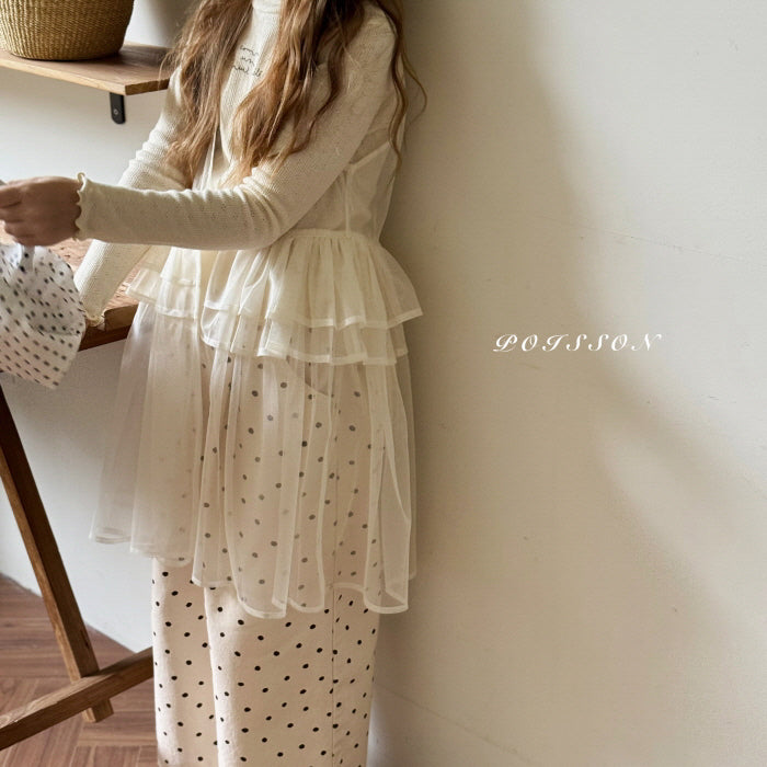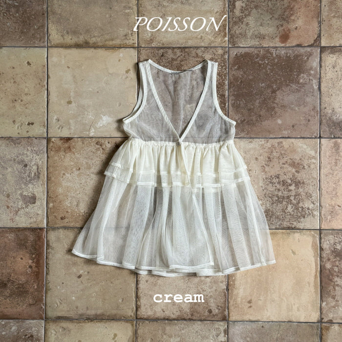 レイヤードスタイルに大活躍するノースリレイヤードワンピース!インナーが映える透け感、フリルデザインもGOOD!前身ごろの胸元にひとつボタン留めがあり、開閉することが可能です。実店舗で人気のあるアイテムです!XXL(140cm)はジュニアサイズ規格の為、定価より+¥200頂戴いたします。