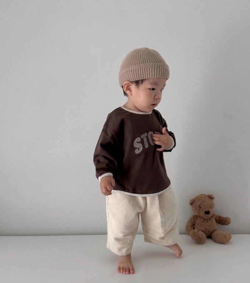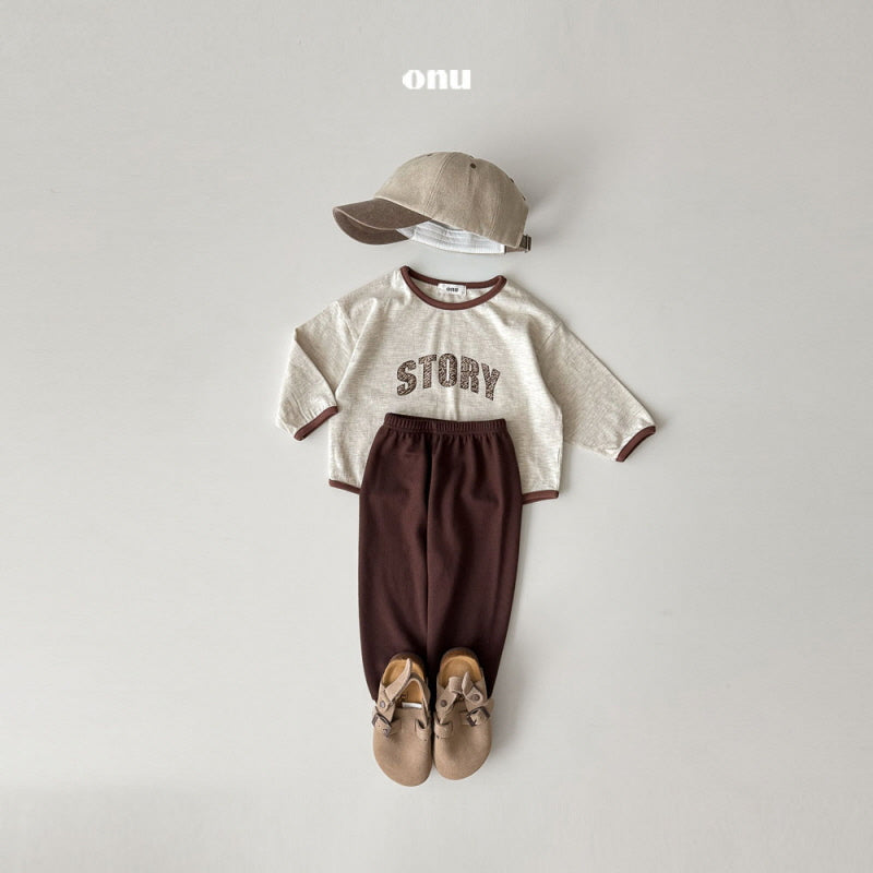 STORYのフォントデザインが可愛いロングカットソー!男の子でも女の子でも着用できます。生地の伸縮性はあります。